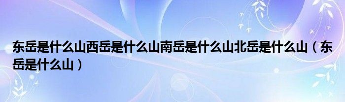 大家好,小式来为大家解答以上的问题。东岳是什么山西岳是什么山南岳是什么山北岳是什么山,东岳是什么山这个很多人还不知道,现在让我们一起来看看吧!