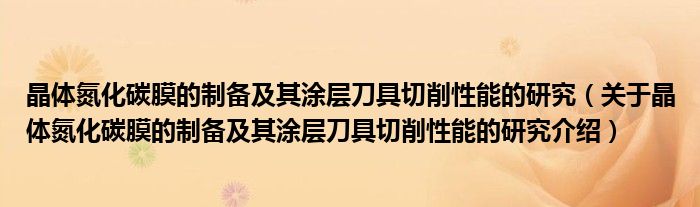 关于晶体氮化碳膜的制备及其涂层刀具切削性能的研究到此分享完毕,希望能帮助到您。