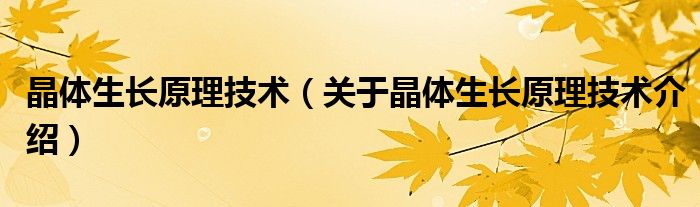 大家好,小夏来为大家解答以上的问题。晶体生长原理技术,关于晶体生长原理技术介绍这个很多人还不知道,现在让我们一起来看看吧!