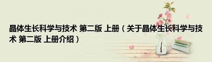 1、 《晶体生长科学与技术(第二版)(上册)》是1997年科学出版社出版的图书。