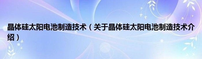 大家好,小夏来为大家解答以上的问题。晶体硅太阳电池制造技术,关于晶体硅太阳电池制造技术介绍这个很多人还不知道,现在让我们一起来看看吧!