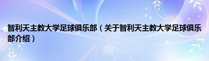 关于智利天主教大学足球俱乐部到此分享完毕,希望能帮助到您。