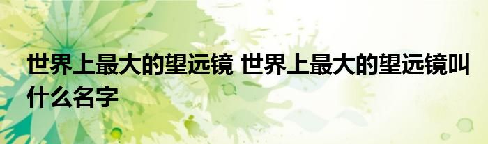 世界上最大的望远镜是500米口径球面射电望远镜,英文简称FAST。500米口径球面射电望远镜位于贵州省黔南布依族苗族自治州境内,是“十一五”重大科技基础设施建设项目。500米口径球面射电望远镜于2011年3月25日动工兴建;于2016年9月25日进行落成启动仪式,该科技基础设施进入试运行、试调试工作于2020年1月11日通过验收工作,正式开放运行。