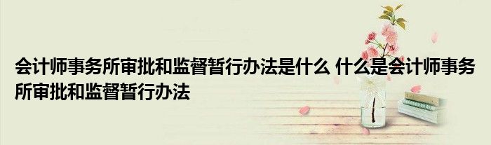 《会计师事务所审批和监督暂行办法》是以2005年财政部第24号令的形式发布的会计规章。《会计师事务所审批和监督暂行办法》中规定:财政部和省级财政部门应当遵循公开、公平、公正、便民、高效的原则,依法审批会计师事务所,监督会计师事务所的业务活动。其主要目的为规范会计师事务所的审批,加强对会计师事务所的监督,促进注册会计师行业健康发展。