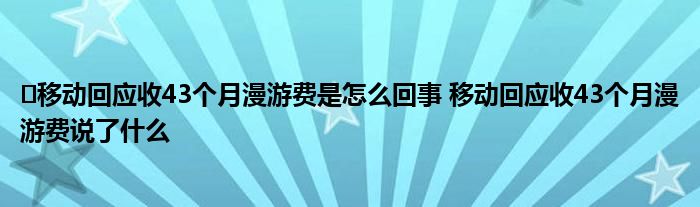 针对有媒体报道的移动至今仍在收取某消费者漫游费一事,北京移动发布声明回应。具体移动回应收43个月漫游费是怎么回事?移动回应收43个月漫游费说了什么?一起来了解。
