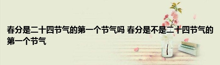 春分不是二十四节气的第一个节气,春分是二十四节气的第四个节气。春分是从每年的3月20日(或21日)开始至4月4日(或5日)结束。春分,斗指卯位(正东方向)。每年公历3月20或21日,太阳到达黄经0度(春分点)时开始。这天昼夜长短平均,正当春季九十日之半,故称“春分”。