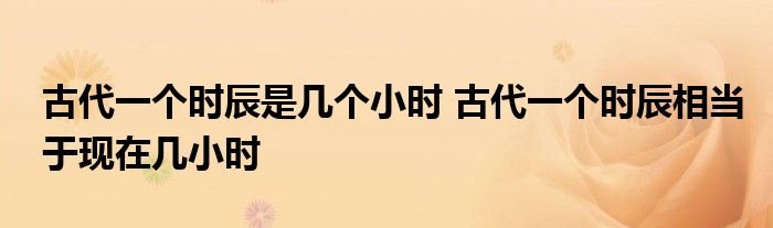 古代一个时辰是2个小时。时辰是传统的计时单位,是把一天分为十二段,每一段就叫做一个时辰。十二时辰分别以地支为名,十二时辰制西周时就已使用。把一昼夜平分为十二段,每段叫做一个时辰,合现在的两小时。十二个时辰分别以地支为名称,从半夜起算,半夜十一点到一点是子时,中午十一点到一点是午时。
