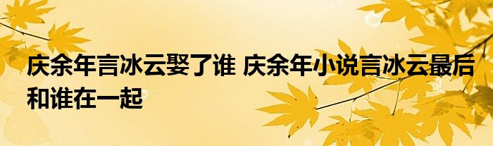 小说中言冰云到结局并没有娶谁,也没有和任何女子在一起。不过说到言冰云的感情线,他的确有喜欢的人,那就是沈小姐,明明两人互相喜欢,但奈何自己的身份,言冰云到结局也没有向心爱的女子表明心意。