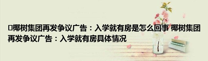 椰树集团再发争议广告:入学就有房是怎么回事