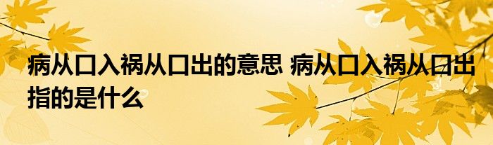 病从口入祸从口出的意思是:病毒常常因饮食不注意而入侵,灾祸往往因说话不谨慎而引起。是一个成语,最早出自晋朝傅玄的《口铭》,这句话主要是为了教导人们为人之道,告诫人们要谨言慎行。直至现在也仍然让人受益匪浅。
