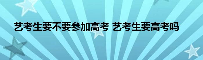 艺考生要不要参加高考