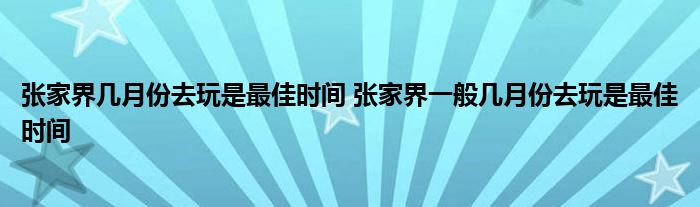 张家界4月份至10月份去玩是最佳时间,尤其是4月和10月这两个月份。张家界属于中亚热带山原型季风性湿润气候,四季分明,光热充足,雨量充沛,不同季节均有不同特色与特点。张家界有着罕见的石英砂岩峰林,山型地貌奇特,这是张家界的魅力所在。