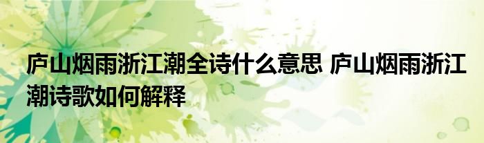 《庐山烟雨浙江潮》诗歌翻译:庐山美丽神秘的烟雨,钱塘江宏伟壮观的潮汐,值得去观赏一番;无缘去观赏庐山的烟雨和钱塘江的潮汐,是会遗憾终身的。终于亲临庐山、浙江,看到了蒙蒙烟雨、澎湃潮水,却发现过去的冲动妄念不过如此,并无惊奇;只觉庐山烟雨就是庐山烟雨,浙江潮水就是浙江潮水。