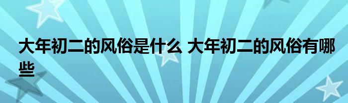 大年初二的习俗有回娘家、祭财神等。大年初二又叫迎婿日,出嫁的女儿要回娘家,夫婿要同行,所以俗称迎婿日。回家时要携带礼品,名为带手或伴手。大年初二,出嫁的女儿会带着丈夫及儿女回娘家拜年。这一天,回娘家的女儿必须携带一些礼品和红包,分给娘家的小孩,并且在娘家吃午饭。