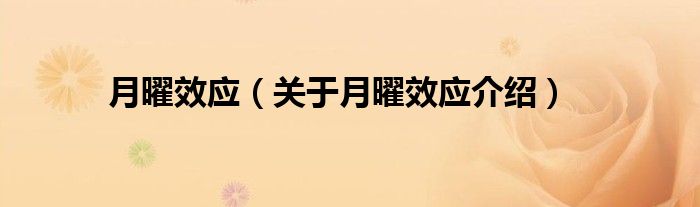 大家好,小夏来为大家解答以上的问题。月曜效应,关于月曜效应介绍这个很多人还不知道,现在让我们一起来看看吧!