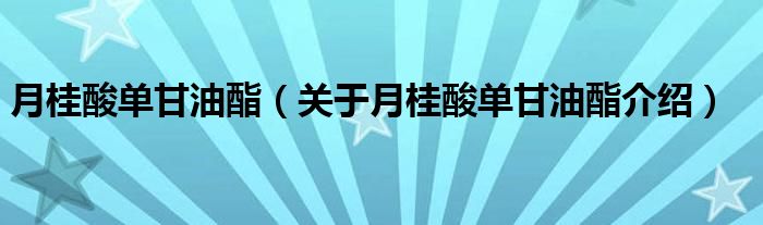 大家好,小夏来为大家解答以上的问题。月桂酸单甘油酯,关于月桂酸单甘油酯介绍这个很多人还不知道,现在让我们一起来看看吧!