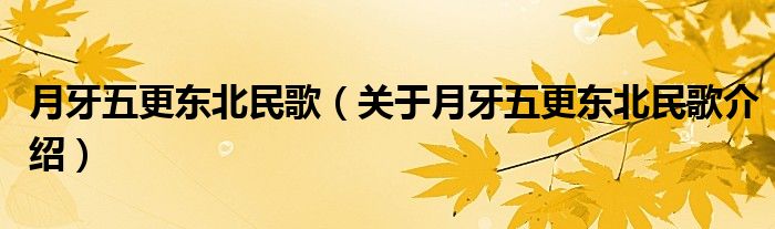 大家好,小夏来为大家解答以上的问题。月牙五更东北民歌,关于月牙五更东北民歌介绍这个很多人还不知道,现在让我们一起来看看吧!