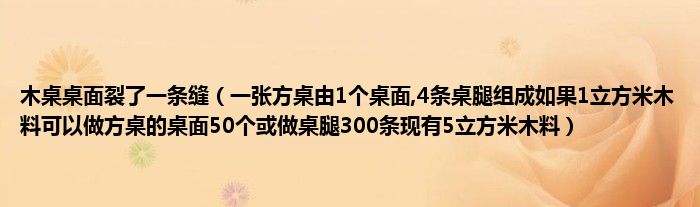 大家好,我是小小根,我来为大家解答以上问题。木桌桌面裂了一条缝,一张方桌由1个桌面,4条桌腿组成如果1立方米木料可以做方桌的桌面50个或做桌腿300条现有5立方米木料很多人还不知道,现在让我们一起来看看吧!