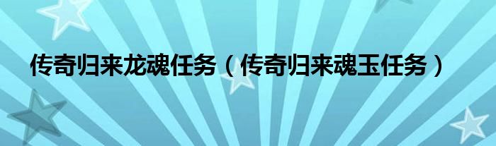 大家好,小豆来为大家解答以上的问题。传奇归来龙魂任务,传奇归来魂玉任务这个很多人还不知道,现在让我们一起来看看吧!