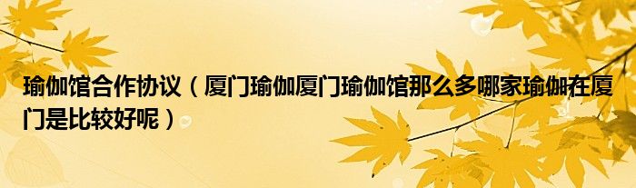 大家好,我是小小根,我来为大家解答以上问题。瑜伽馆合作协议,厦门瑜伽厦门瑜伽馆那么多哪家瑜伽在厦门是比较好呢很多人还不知道,现在让我们一起来看看吧!