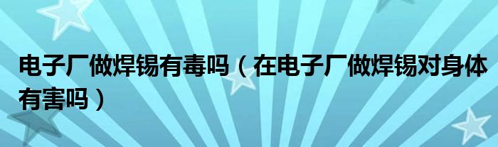 大家好,我是小小根,我来为大家解答以上问题。电子厂做焊锡有毒吗,在电子厂做焊锡对身体有害吗很多人还不知道,现在让我们一起来看看吧!