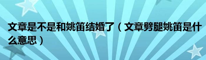 大家好,我是小小根,我来为大家解答以上问题。文章是不是和姚笛结婚了,文章劈腿姚笛是什么意思很多人还不知道,现在让我们一起来看看吧!