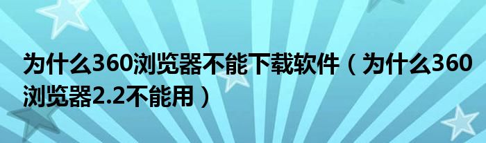 大家好,我是小小根,我来为大家解答以上问题。为什么360浏览器不能下载软件,为什么360浏览器2.2不能用很多人还不知道,现在让我们一起来看看吧!