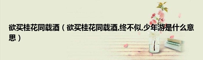 1、“欲买桂花同载酒,终不似,少年游。”的意思是:等到条件好了再去做年少时做的事,却发现没了像年少时的那么开心。
