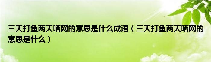 大家好,我是小根根,我来为大家解答以上问题。三天打鱼两天晒网的意思是什么成语,三天打鱼两天晒网的意思是什么很多人还不知道,现在让我们一起来看看吧!