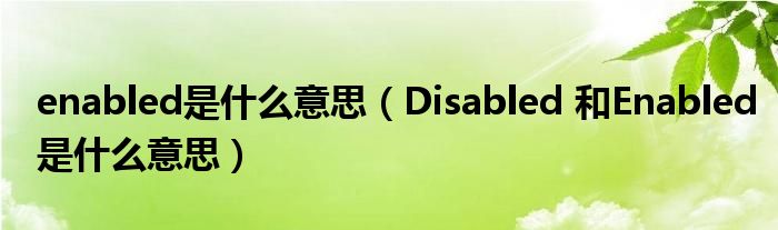 大家好,我是小根根,我来为大家解答以上问题。enabled是什么意思,Disabled 和Enabled是什么意思很多人还不知道,现在让我们一起来看看吧!