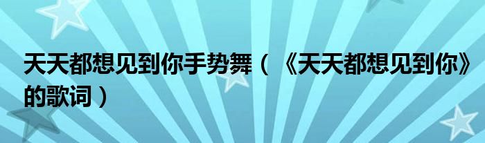 大家好,我是小根根,我来为大家解答以上问题。天天都想见到你手势舞,《天天都想见到你》的歌词很多人还不知道,现在让我们一起来看看吧!