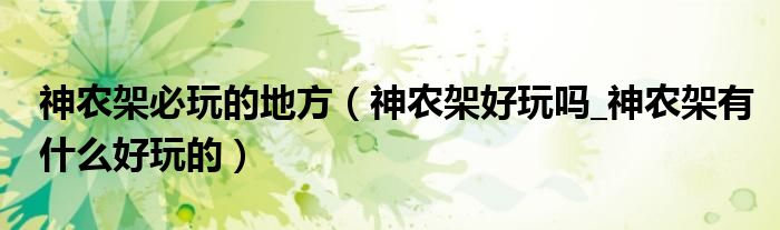 大家好,我是小根根,我来为大家解答以上问题。神农架必玩的地方,神农架好玩吗_神农架有什么好玩的很多人还不知道,现在让我们一起来看看吧!