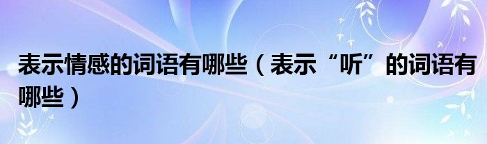 大家好,我是小根根,我来为大家解答以上问题。表示情感的词语有哪些,表示“听”的词语有哪些很多人还不知道,现在让我们一起来看看吧!