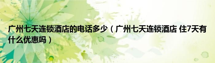 大家好,我是小根根,我来为大家解答以上问题。广州七天连锁酒店的电话多少,广州七天连锁酒店 住7天有什么优惠吗很多人还不知道,现在让我们一起来看看吧!