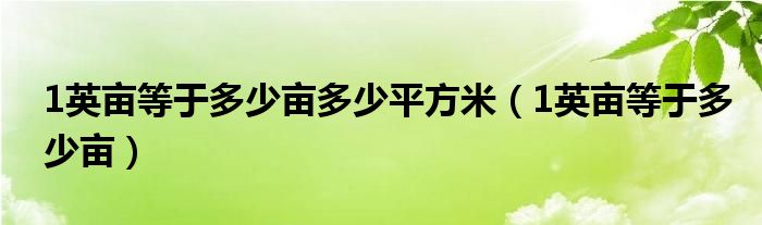 大家好,我是小根根,我来为大家解答以上问题。1英亩等于多少亩多少平方米,1英亩等于多少亩很多人还不知道,现在让我们一起来看看吧!