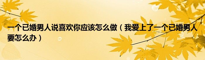 大家好,我是小根根,我来为大家解答以上问题。一个已婚男人说喜欢你应该怎么做,我爱上了一个已婚男人要怎么办很多人还不知道,现在让我们一起来看看吧!