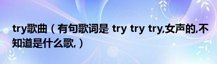 大家好,我是小根根,我来为大家解答以上问题。try歌曲,有句歌词是 try try try,女声的,不知道是什么歌,很多人还不知道,现在让我们一起来看看吧!