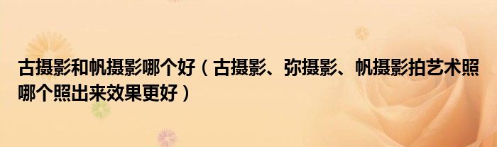 大家好,我是小根根,我来为大家解答以上问题。古摄影和帆摄影哪个好,古摄影、弥摄影、帆摄影拍艺术照哪个照出来效果更好很多人还不知道,现在让我们一起来看看吧!