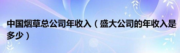 大家好,我是小根根,我来为大家解答以上问题。中国烟草总公司年收入,盛大公司的年收入是多少很多人还不知道,现在让我们一起来看看吧!