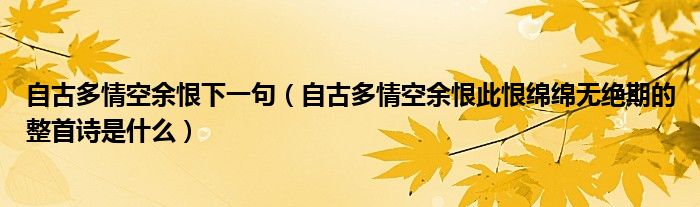 大家好,我是小根根,我来为大家解答以上问题。自古多情空余恨下一句,自古多情空余恨此恨绵绵无绝期的整首诗是什么很多人还不知道,现在让我们一起来看看吧!
