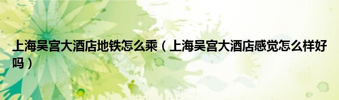 大家好,我是小根根,我来为大家解答以上问题。上海吴宫大酒店地铁怎么乘,上海吴宫大酒店感觉怎么样好吗很多人还不知道,现在让我们一起来看看吧!
