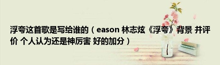大家好,我是小根根,我来为大家解答以上问题。浮夸这首歌是写给谁的,eason 林志炫《浮夸》背景 并评价 个人认为还是神厉害 好的加分很多人还不知道,现在让我们一起来看看吧!