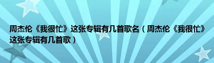 大家好,我是小根根,我来为大家解答以上问题。周杰伦《我很忙》这张专辑有几首歌名,周杰伦《我很忙》这张专辑有几首歌很多人还不知道,现在让我们一起来看看吧!