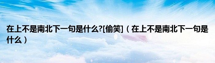 大家好,我是小根根,我来为大家解答以上问题。在上不是南北下一句是什么?[偷笑],在上不是南北下一句是什么很多人还不知道,现在让我们一起来看看吧!1、哈哈,出这问题的人被骂惨喽。本文到此讲解完毕了,希望对大家有帮助。
