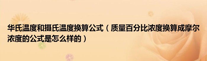 大家好,我是小根根,我来为大家解答以上问题。华氏温度和摄氏温度换算公式,质量百分比浓度换算成摩尔浓度的公式是怎么样的很多人还不知道,现在让我们一起来看看吧!