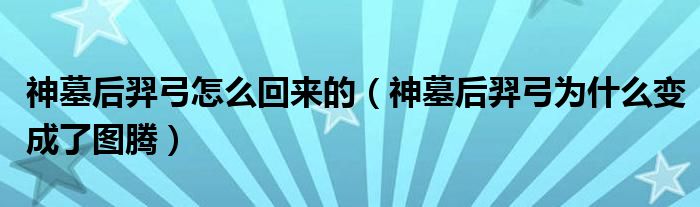 大家好,我是小根根,我来为大家解答以上问题。神墓后羿弓怎么回来的,神墓后羿弓为什么变成了图腾很多人还不知道,现在让我们一起来看看吧!1、原本是最古老的生命树。2、后来被窃取了一段树干做成了后羿弓。本文到此讲解完毕了,希望对大家有帮助。