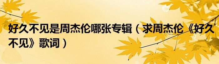 大家好,我是小根根,我来为大家解答以上问题。好久不见是周杰伦哪张专辑,求周杰伦《好久不见》歌词很多人还不知道,现在让我们一起来看看吧!