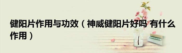 3、那么,神威健阳片好吗,有什么作用? 神威健阳片由蜈蚣粉、淫羊藿、甘草、蜂王浆等制成,主要有补肝滋肾、益精养血、补脾益胃的功效,用于肾阳亏虚所至之筋骨不健、腰膝酸软等病症,有强健体魄、改善精神状态、抗疲劳等作用。