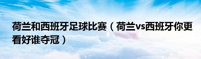大家好,我是小根根,我来为大家解答以上问题。荷兰和西班牙足球比赛,荷兰vs西班牙你更看好谁夺冠很多人还不知道,现在让我们一起来看看吧!