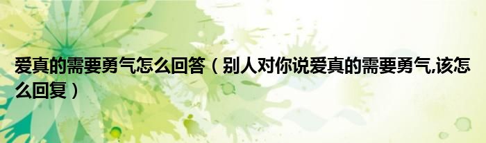 大家好,我是小根根,我来为大家解答以上问题。爱真的需要勇气怎么回答,别人对你说爱真的需要勇气,该怎么回复很多人还不知道,现在让我们一起来看看吧!